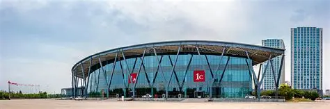 Dongying Yellow River International Convention and Exhibition Center comprises three exhibition halls within a total building area of 37,000 sqm, including 23,679 sqm of exhibition space with 836 international standard booths, a 5,153 sqm conference center, and a 900 sqm multifunction hall. The halls extend approximately 580 meters north–south and 175 meters east–west: Hall 1 covers about 6,500 sqm, Hall 2 about 6,000 sqm, and Hall 3 about 6,000 sqm, each designed for a floor load of 5 tons. The venue accommodates around 260–280 standard booths in Hall 1, 260 in Hall 2, and 240–260 in Hall 3, with non-metal, wear-resistant flooring throughout. The clear height ranges from 18 meters at the lowest points to 20 meters at the center. All halls are equipped with dedicated compressed air supply, three-phase four-wire 380/220V AC power at 50Hz, and lighting of approximately 300 lux, and feature cargo access with personnel doors measuring 2.5 × 4.5 meters and truck doors measuring 4.5 meters high by 5 meters wide.
