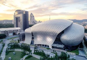 Guiyang International Convention and Exhibition Center, located in Guanshanhu District, Guiyang, is the largest and most advanced expo complex in Southwest China. Developed by Zhongtian Urban Investment Group, it spans 94 hectares with a total planned area of nearly 1 million sqm. The complex includes exhibition halls, conference facilities, hotels, offices, and leisure amenities.