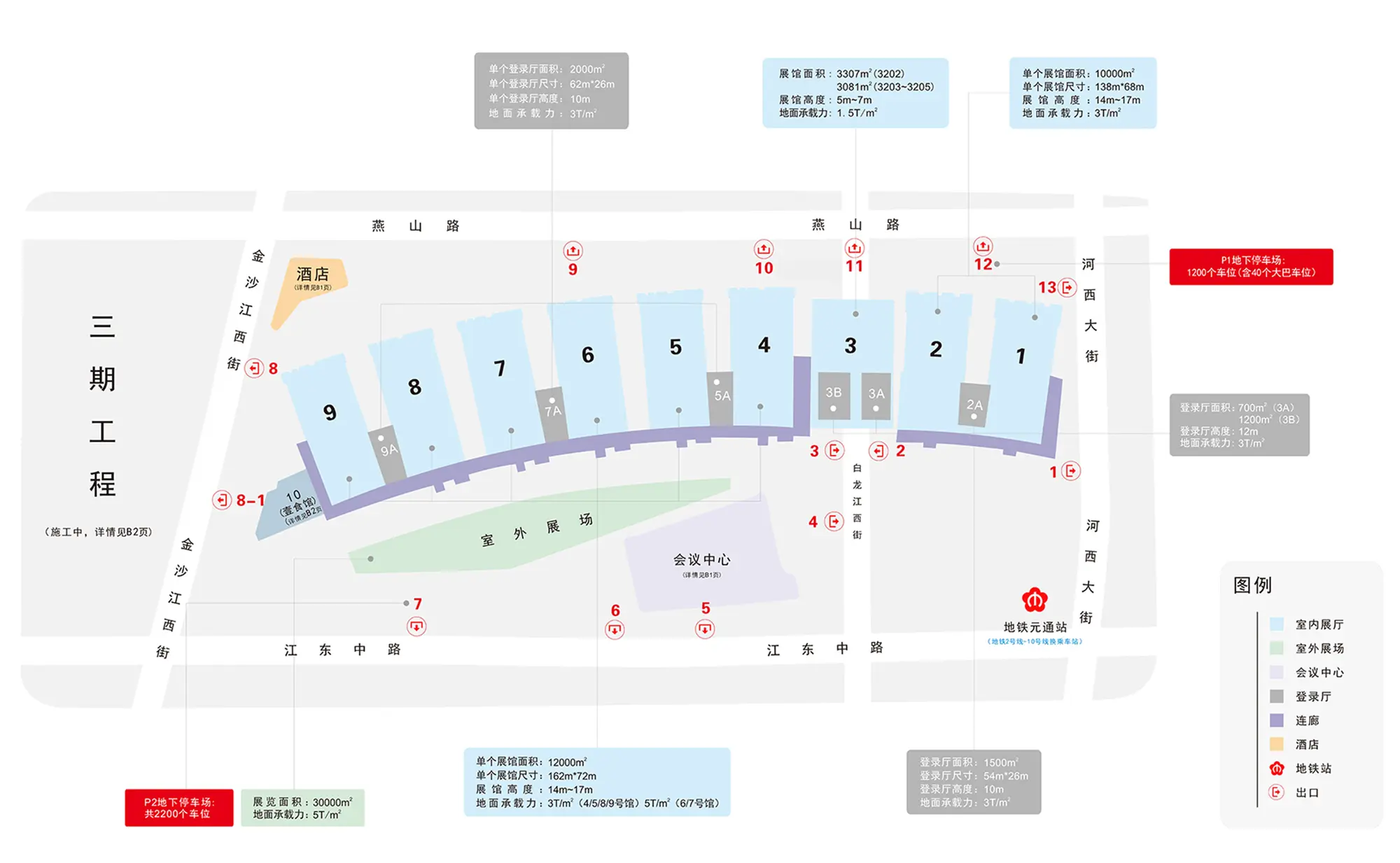 The Nanjing International Expo Center, in Hexi New Town, is a modern venue combining exhibitions, conferences, lodging, dining, performances, and sports. Covering 540,000 sqm, it has 9 halls with 110,000 sqm indoor and 30,000 sqm outdoor space, a 46,500 sqm conference center, a 252-room hotel, and parking for 5,800+ vehicles. Located in the Yuan Tong business district, it’s near commercial complexes, landmarks, and 10,000+ hotel rooms, with easy metro, bus, light rail, airport, and railway access. It has hosted major events like the Summer Youth Olympic Games and holds UFI and ICCA certifications. Expansion completing in 2020 will make it a top international expo city, boosting Nanjing’s global exhibition status.