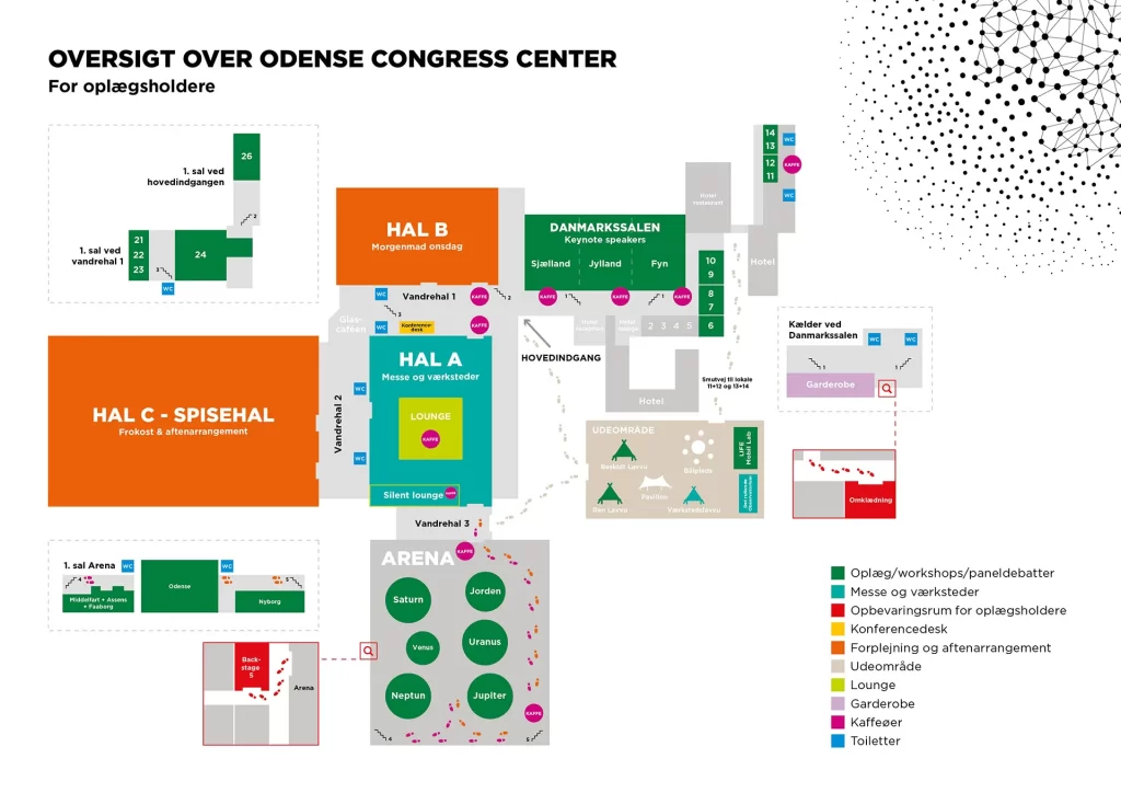 Odense Congress Center is a large conference and exhibition venue in Odense, about 8 km from the city center, offering around 20,000 m² of space with roughly 13,000 m² for exhibitions, several large halls, and more than 25 flexible meeting and conference rooms, capable of hosting events for up to about 8,000 people. It is known for hosting major trade fairs, congresses, concerts, and corporate events, and features on-site dining, lounges, and extensive free parking (around 1,900 spaces with EV chargers). The center is directly connected to Best Western Plus Hotel Odense, making it convenient for overnight guests. It is easily reached from Odense’s main train station by bus or taxi and sits near the E20 motorway. Nearby amenities include shopping at Rosengårdcentret and other hotels and business areas in the city, making it a practical all-in-one destination for large events.