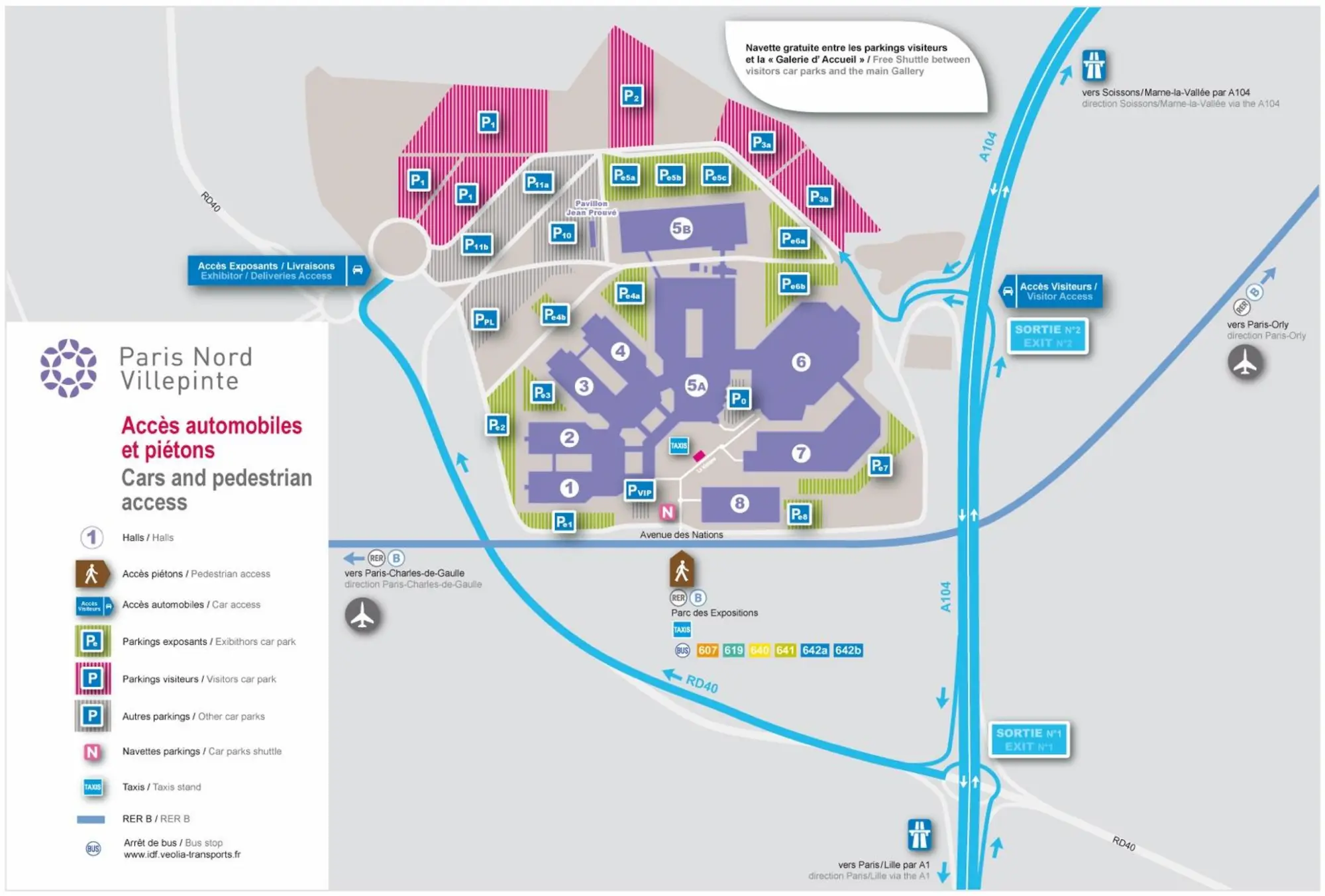 Paris-Nord Villepinte is one of France’s largest exhibition and convention centres, located in Villepinte, northeast of Paris near Paris Charles de Gaulle Airport. The venue offers about 240,000–250,000 m² of indoor exhibition space, approximately 360,000 m² of outdoor space, and 9 halls (7 interconnected and 2 independent), along with around 39 meeting and conference rooms. It features more than 40 restaurants and catering outlets, large on-site parking facilities, and can host tens of thousands of visitors depending on the event. The centre is famous for major international trade fairs such as SIAL, Maison & Objet, and Eurosatory, and it also served as an Olympic venue during the 2024 Summer Olympics. It is easily accessible via RER B (Parc des Expositions station), just one stop from the airport and about 30 minutes from central Paris, with additional bus connections. The surrounding area includes multiple hotels, the Paris Nord 2 business park, and nearby shopping outlets, making it a well-equipped business and event destination.