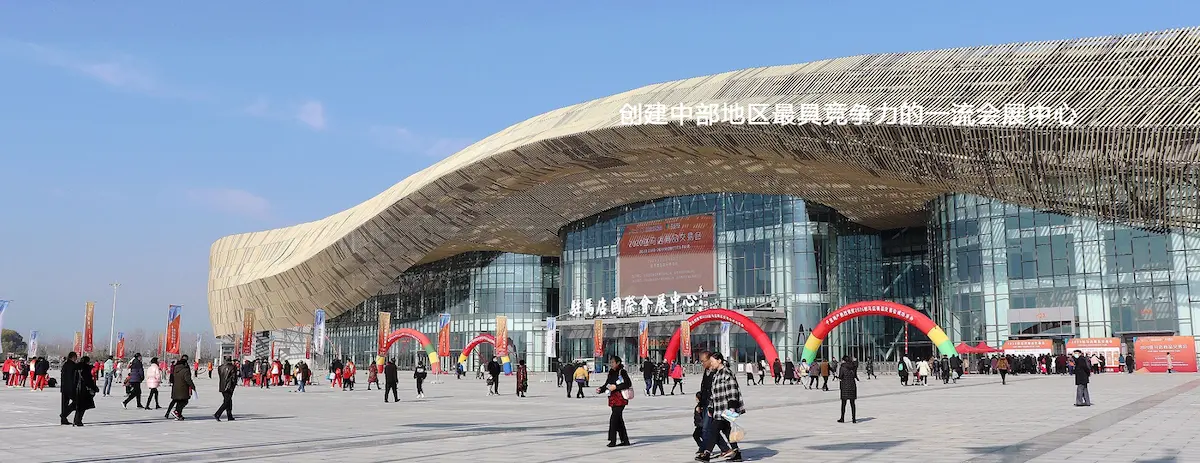 Zhumadian International Convention & Exhibition Center is a landmark complex in Tianzhong (Zhumadian, southern Henan), covering about 500 mu with 156,000 m² of floor space and integrating exhibitions, conferences, banquets, and performances. Its “Seed of Tianzhong” design draws on local sesame-seed imagery and Central Plains culture, with a central courtyard (symbolizing “four waters returning to the hall”) and a folded glass–pale gold façade evoking rippling wheat. Since opening in 2019, it has hosted major events including the 22nd China Agro-products Processing Investment & Trade Fair and the city’s May “Two Sessions,” and aims to grow the local MICE economy. Facilities include indoor and outdoor exhibition zones (4,000 m²/350 booths and 86,000 m²/2,500 booths), over 20 meeting/VIP rooms for 50–1,300 people, a 20,000 m² parking area, and advanced security and fire systems.