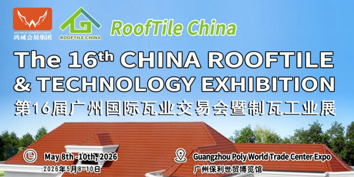 16th China Rooftile and Technology Exhibition will be held May 8–10, 2026 in Guangzhou at Poly World Trade Center Expo. The event showcases various roofing tiles, tile production machinery, accessories and roofing technology achievements. The exhibition hosts 600+ exhibitors, receives over 90,000 visitors, and spans 50,000 sq.m. Organized by Guangdong Grandeur International Exhibition Group, it serves as a platform for roofing material suppliers and buyers to connect, support market entry into China, and enable one-stop sourcing for roofing products and technologies. The show focuses on customized development trends in the construction and roofing industry and gathers domestic and international brands and buyers.