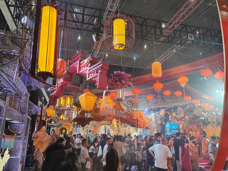 Festive banners, red bridal veils, electronic ceremonial cannons. - Artificial Flowers & Greenery: